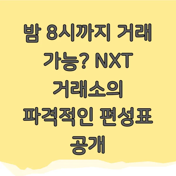 그렇다면 NXT 거래소는 정확히 무엇이고, 우리의 투자 생활에 어떤 변화를 가져올까요? 특히 밤 늦게까지 주식을 거래할 수 있다는 소문, 과연 사실일까요? 지금부터 NXT의 모든 것을 파헤쳐 보겠습니다.